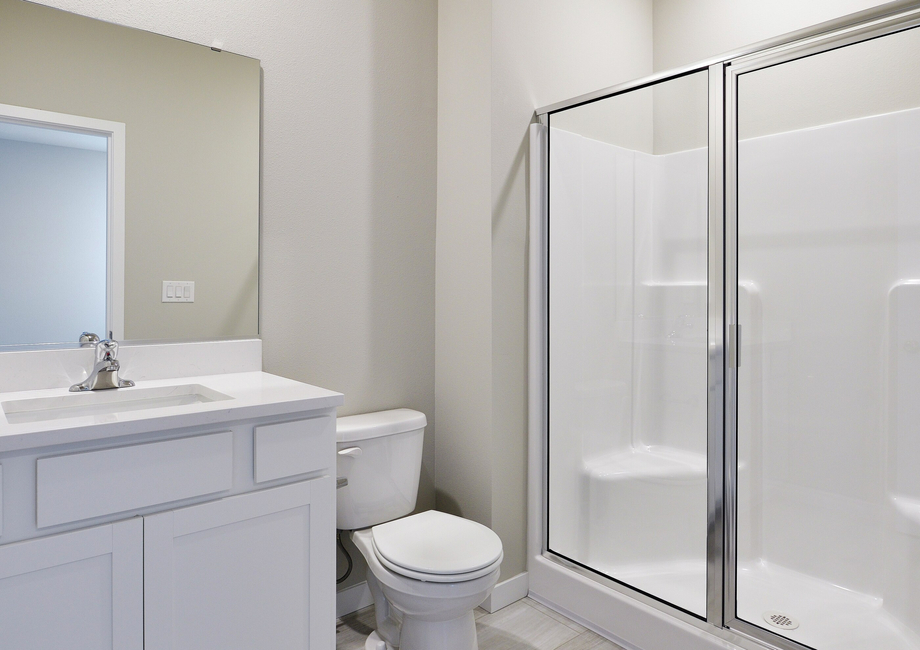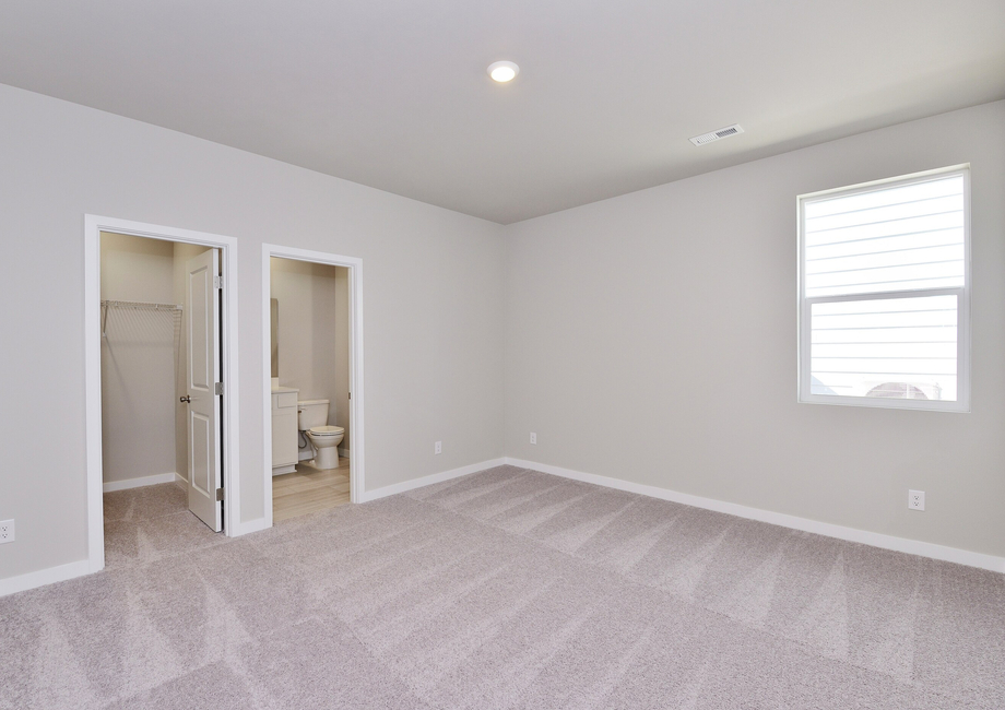 The primary bedroom in the Bainbridge floor plan is truly a private retreat designed for ultimate comfort and relaxation. Tucked away from the other bedrooms, this spacious suite offers the peace and quiet homeowners crave. The room provides plenty of space for a king-sized bed and additional furniture, with natural light streaming in to create a warm and inviting atmosphere. Just steps away, the primary bathroom features a large vanity and a spacious step-in shower that makes every day feel like a spa day. There is also a large walk-in closet located off of the bedroom.