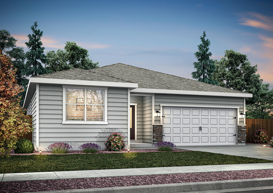 Practicality is a key highlight of this floor plan, with a convenient laundry room, mechanical closet, and a generous 2-car garage providing all the space you need for storage and daily living. The covered front porch welcomes you into a cozy foyer with the secondary bedrooms located directly off of it. The bedrooms share a full bath that is perfect for children or guests. Whether you're a growing family or looking to downsize without compromising style and function, the Bainbridge is designed to meet your lifestyle needs with comfort and efficiency.