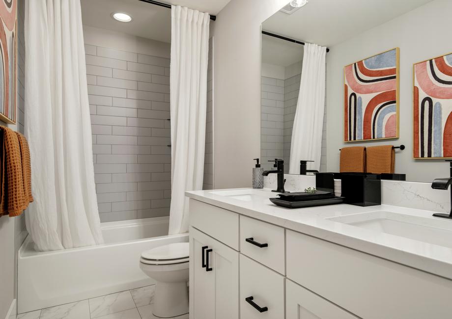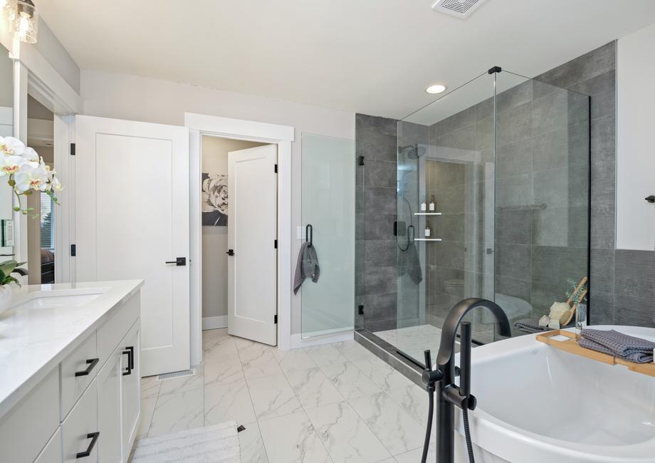 The master retreat of the Braeburn plan is the perfect space to begin and end each day. Located on the third floor at the front of the home, the master suite features large windows that fill the room with natural light. The en-suite master bath includes an oversized dual-sink vanity, a glass-enclosed shower, a stunning free-standing tub and access to the spacious walk-in closet.Modern Upgrades, All Included