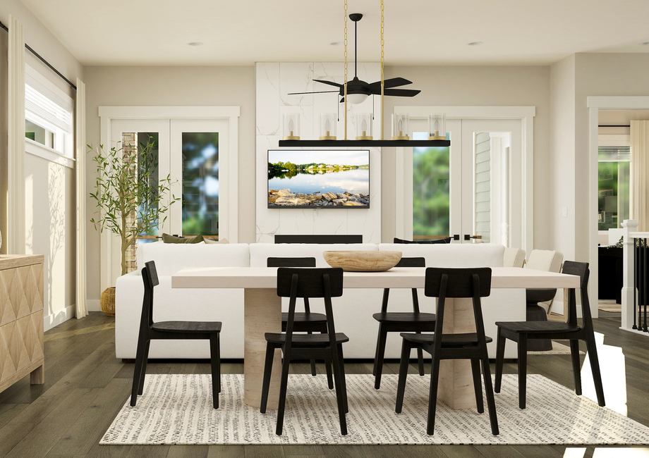 The Cameo showcases an incredible layout allowing you to easily flow from room to room. The heart of this remarkable home is the main living area, where the family room, dining room and the incredible kitchen come together to create a space that's truly the heart and soul of this property. Whether you're watching a movie, sharing stories, or just enjoying the warmth of the dual-sided fireplace, the family room is designed for relaxation and making memories. Adjacent to the family room, the dining room sets the stage for family meals and celebrations. It's a place where conversations flow as effortlessly as the layout. The fully loaded kitchen is a chef's paradise with quartz countertops, Black stainless steel KitchenAid appliances and an abundance of storage.A Relaxing Master Retreat